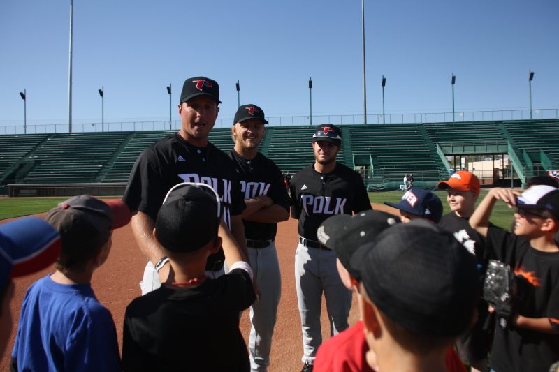 Representing Polk State were Head Coach Al Corbeil, Colt Hankamer (RHP/OF), and Conor Szczerba (2B), who gathered at second base to give their young charges an introduction to making double-plays.