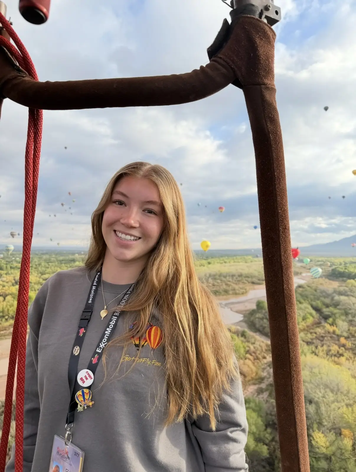 Her passion for aviation stems from her father, Fred, who owns the Tampa-based hot air balloon company, GottaFly.Fun. She has held a Commercial Balloon Pilot Certificate since 2024 and has already provided instruction for more than 30 hot air balloon flights.
