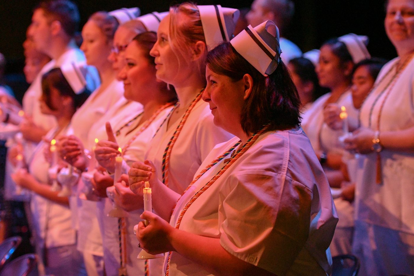 The candlelight processional represents the traditional “Light of Knowledge” and “Ray of Hope” associated with the lamp that Florence Nightingale carried as she visited sick and wounded soldiers during the Crimean War.