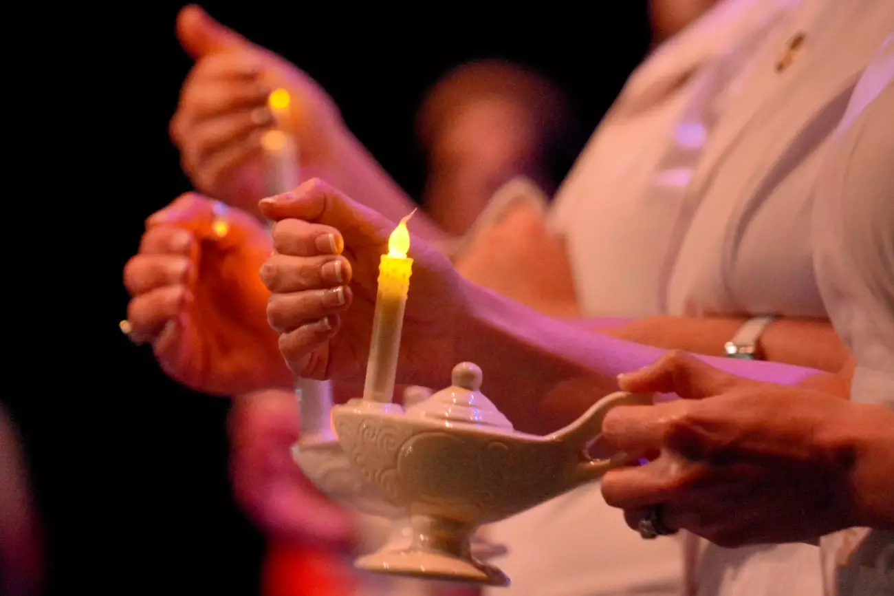 The candlelight processional is a symbolic representation of the traditional “Light of Knowledge” and “Ray of Hope” that was associated with the lamp that Florence Nightingale carried as she visited the sick and wounded soldiers during the Crimean War.