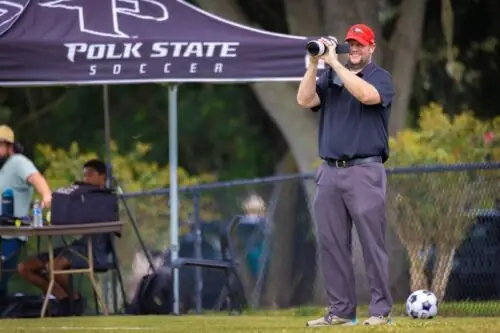 Ferguson covers a Polk State Soccer game in 2025.