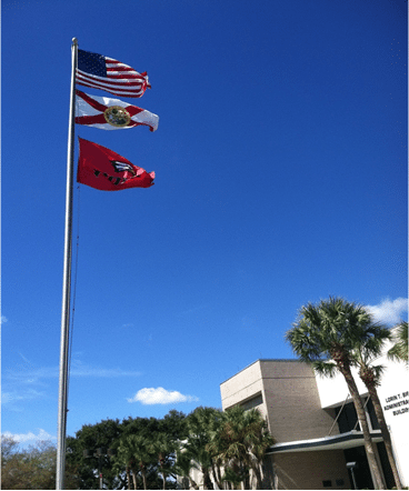 Not sure if there’s a home game on a certain day? Just look to the sky. The College tri-color flies on many days, but the eagle’s head on a field of red flies on any day your Eagles have a home game. So, if you see the red flag flying… your team needs your support in the stands: We are Polk!